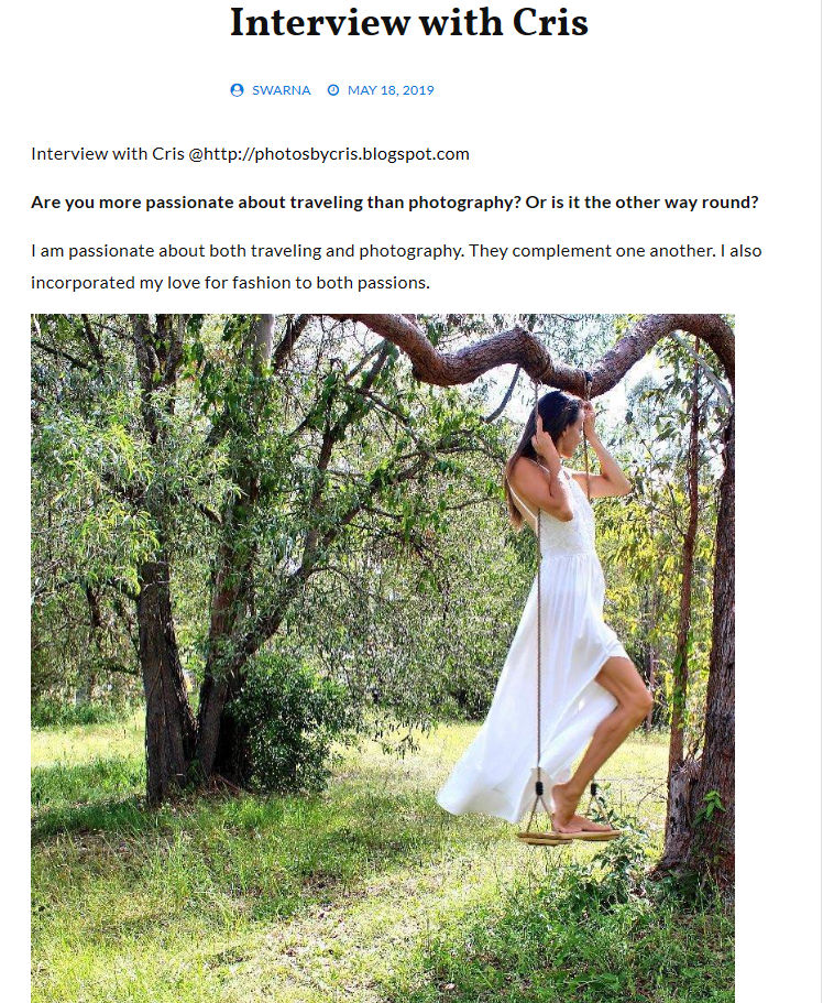 Not long ago I was interviewed by Swarnaz founder of Blog Swarnaz – Impossible is Nothing. It was a delight to work with this amazing woman who is an incredible blogger, a mother, and a beautfiul human being who like many of us are working tireless to achieve her dreams and grow professionally on what we love doing the most. Thank you Swarnaz for the amazing article and please do visit her page and get to know more about her work.
