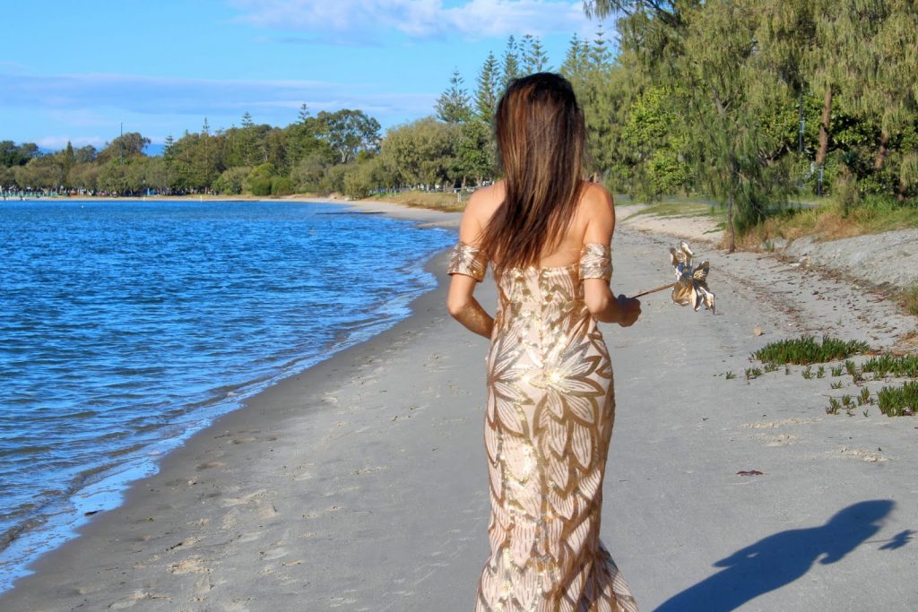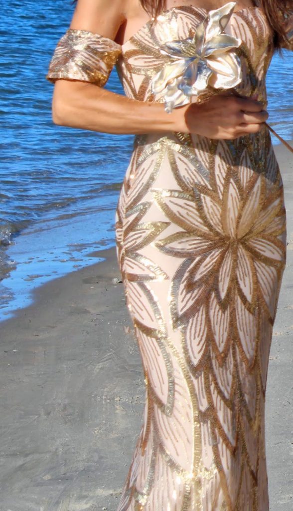 My DRESS is a sparkly golden gown from LILACOCO