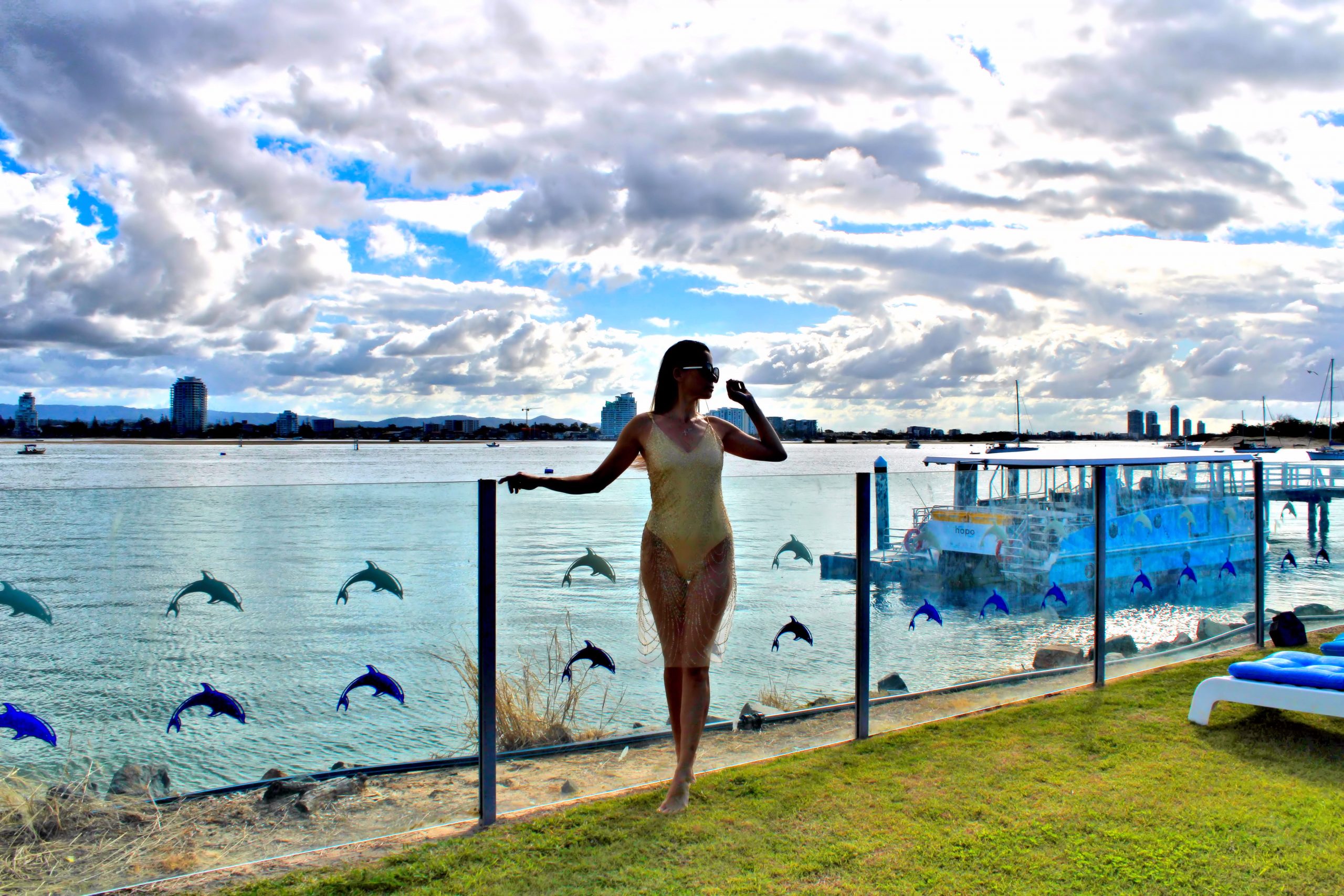 This Sea World resort sounds amazing. This hotel is wonderful. The rooms look great and the view of the Gold Cost is amazing. It is great that there is Sea World right next to you. Fantastic swimsuits and outfits. You look gorgeous. Beautiful photographs.